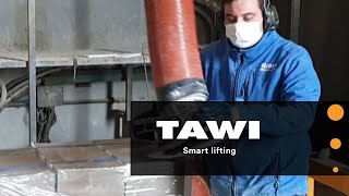 Løft af sten og fliser med en TAWI vakuumløftee sikre et ergonomisk korrekt løft for operatøren, og sparer dermed operatøren for belastning af ryg og skuldre. Løfteudstyret gør det muligt for alle, at løfte tunge emner effektivt, nemt og ergonomisk korrekt. Dette sparer både tid, tunge løft og penge.