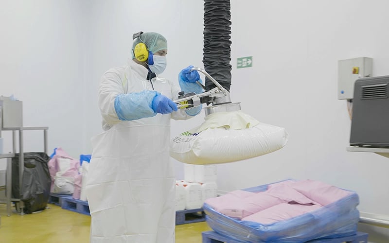 TAWI bag lifters meet the highest standards for all industries and have been carefully designed to reflect the requirements of real-life operations. Suction feet can be equipped with a rubber skirt to compensate for any air leakage when handling porous packaging material. The suction foot also holds plastic bags securely in place until it has reached the floor, even if power is lost, with a safety valve that shuts down the equipment and lowers the bag gently and under complete control.