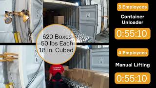 Un conteneur a généralement un espace et une manœuvrabilité limités, ce qui rend difficile toute simplification de la logistique. Le déchargement est généralement effectué en s’appuyant sur le travail manuel, et est souvent sujet aux blessures. Manipuler des charges lourdes met les gens à rude épreuve. Selon NSC Injury Facts, les troubles musculo-squelettiques (TMS) créent des fardeaux financiers pour les entreprises, notamment des frais médicaux, une productivité réduite et l’absence des employés.