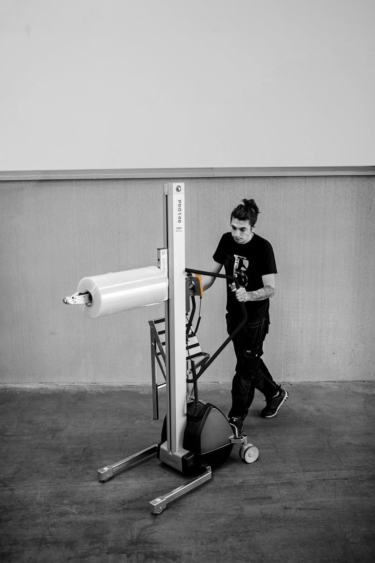 Uma das grandes forças da solução TAWI é a variedade de ferramentas disponíveis. As diferentes ferramentas permitem manusear bobinas, tambores, caixas de papelão e plásticas, entre outros formatos. As bobinas, por exemplo, podem ser inclinadas da posição vertical para a horizontal, facilitando a montagem direta no eixo de máquinas de empacotamento. Já tambores e caixas podem ser inclinados com facilidade para esvaziamento, sem exigir esforço físico do operador. - Movimentação completa: levantar, girar, inclinar e transportar